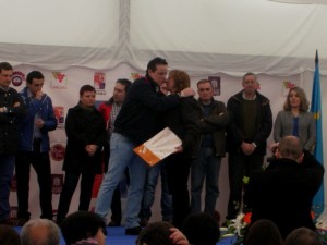 Marcelino Líndez, alcalde de Tineo, haciendo entrega del premio a nuestro stand en la XXIV edición de la Feria de Muestras de Tineo.